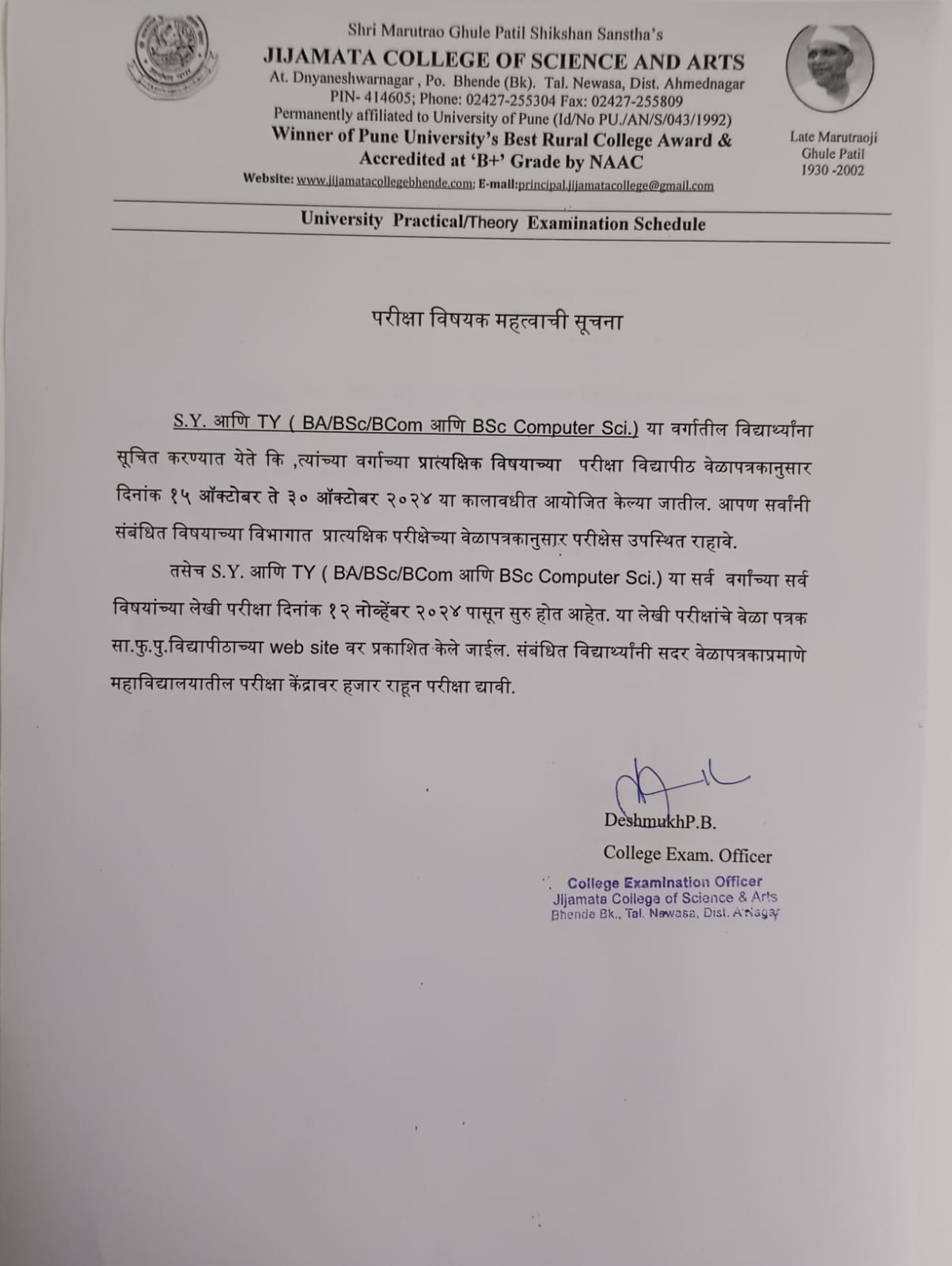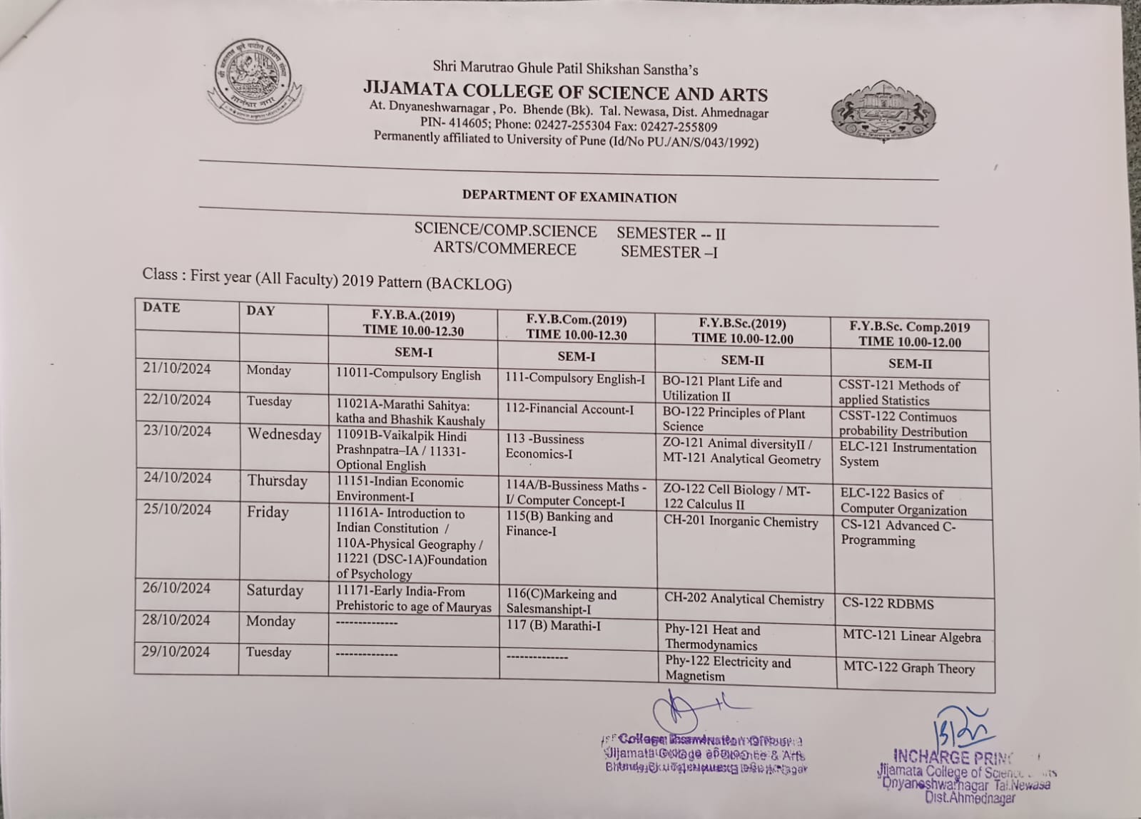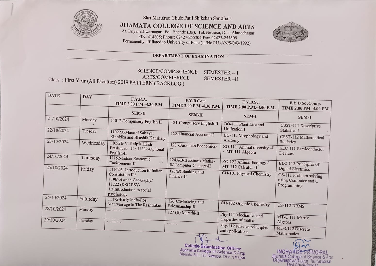 First year all Branch 2019 Pattern is about backlog Examination - II 2024 |